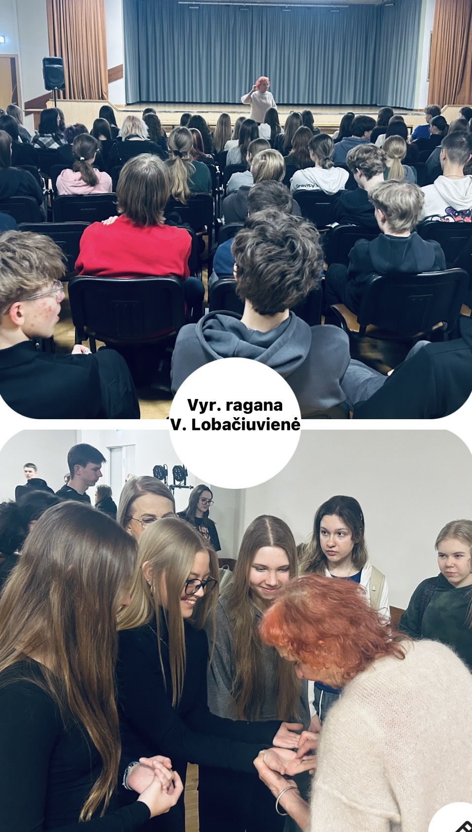 Laikas, skirtas paskaitai, prabėgo labai greitai – daug klausimų liko neatsakyta. Apie skaitymą iš delno ir į asmeninius moksleivių klausimus V. Lobačiuvienė atsakinėjo per visą pertrauką.